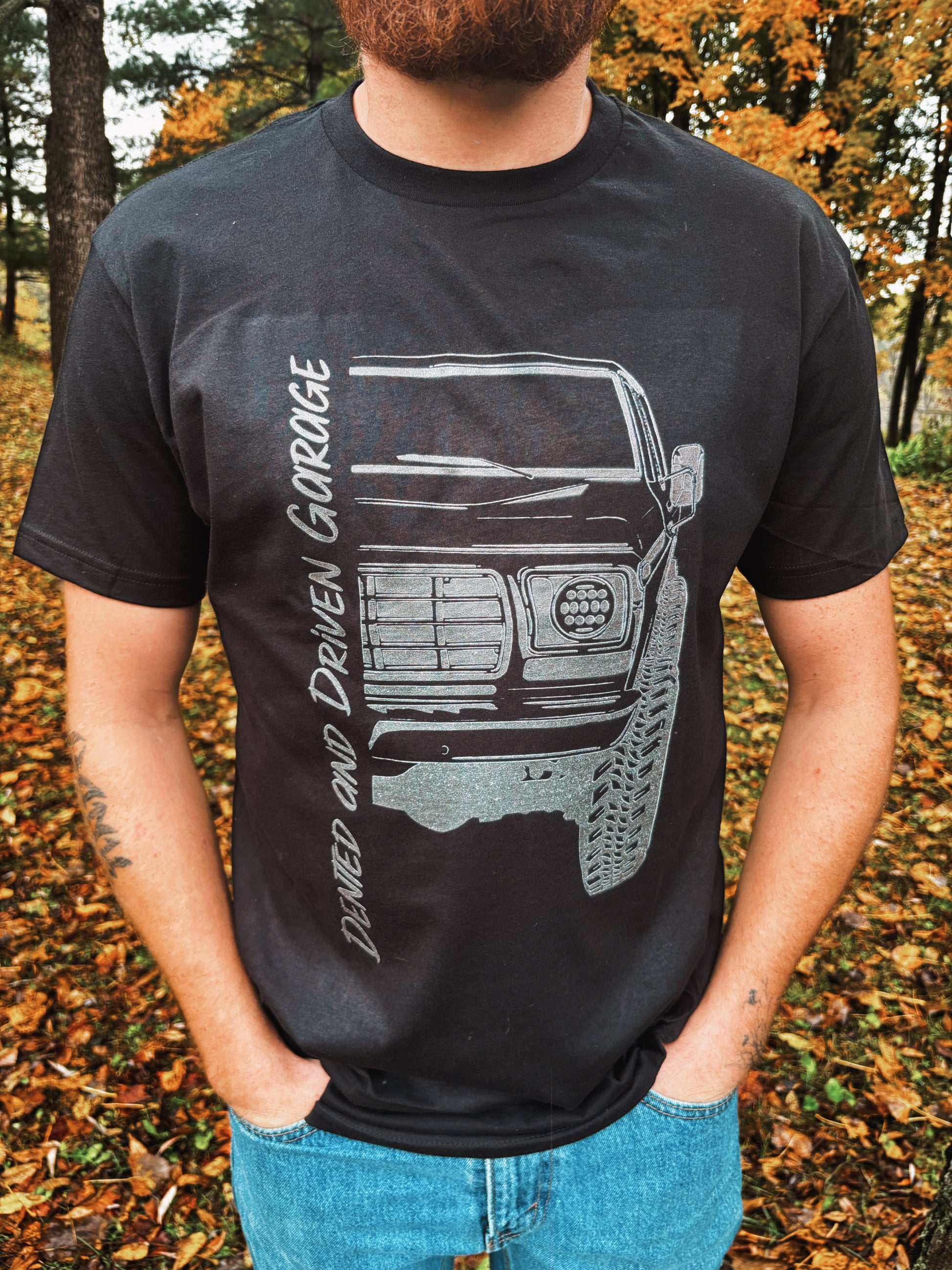 Introducing the Front End Legend! With its crew cab grille and dented and driven logo, this truck is built for those who don't take themselves too seriously on the road. Make a statement with a touch of quirkiness and humor. (It'll definitely turn some heads!)